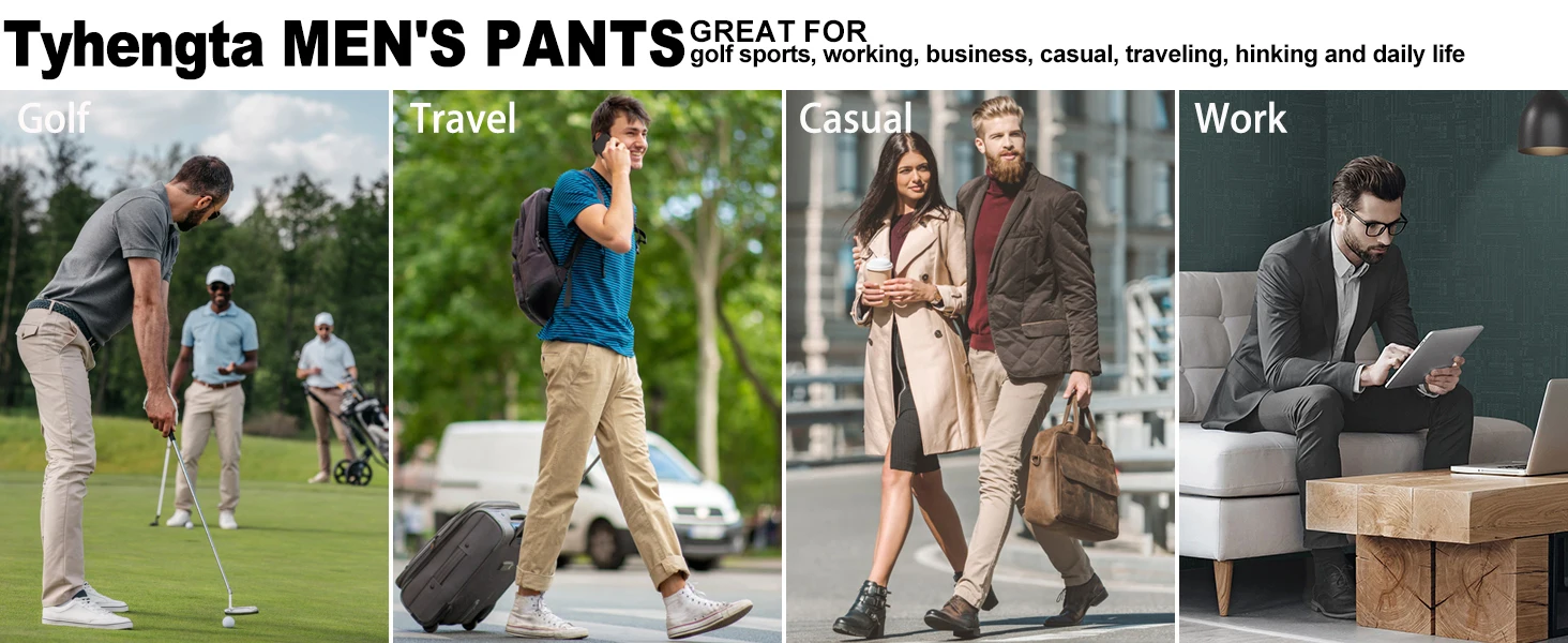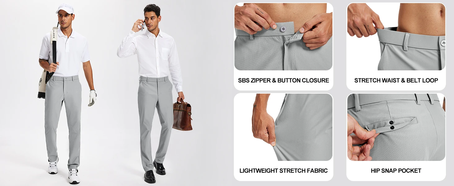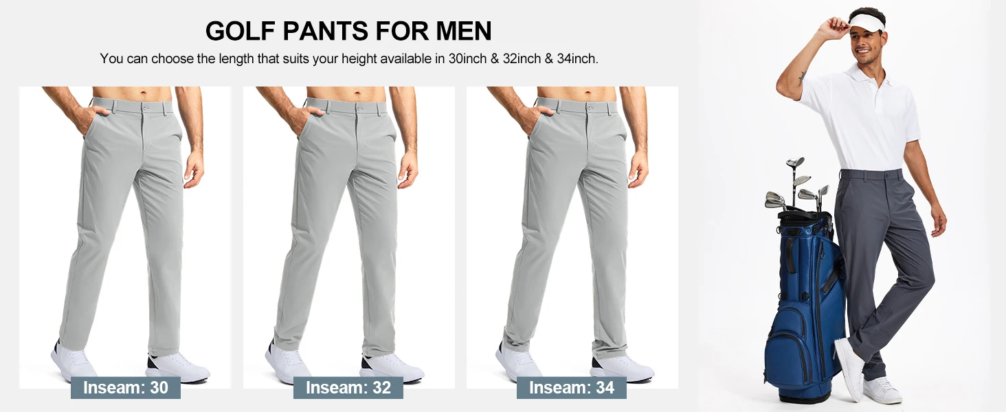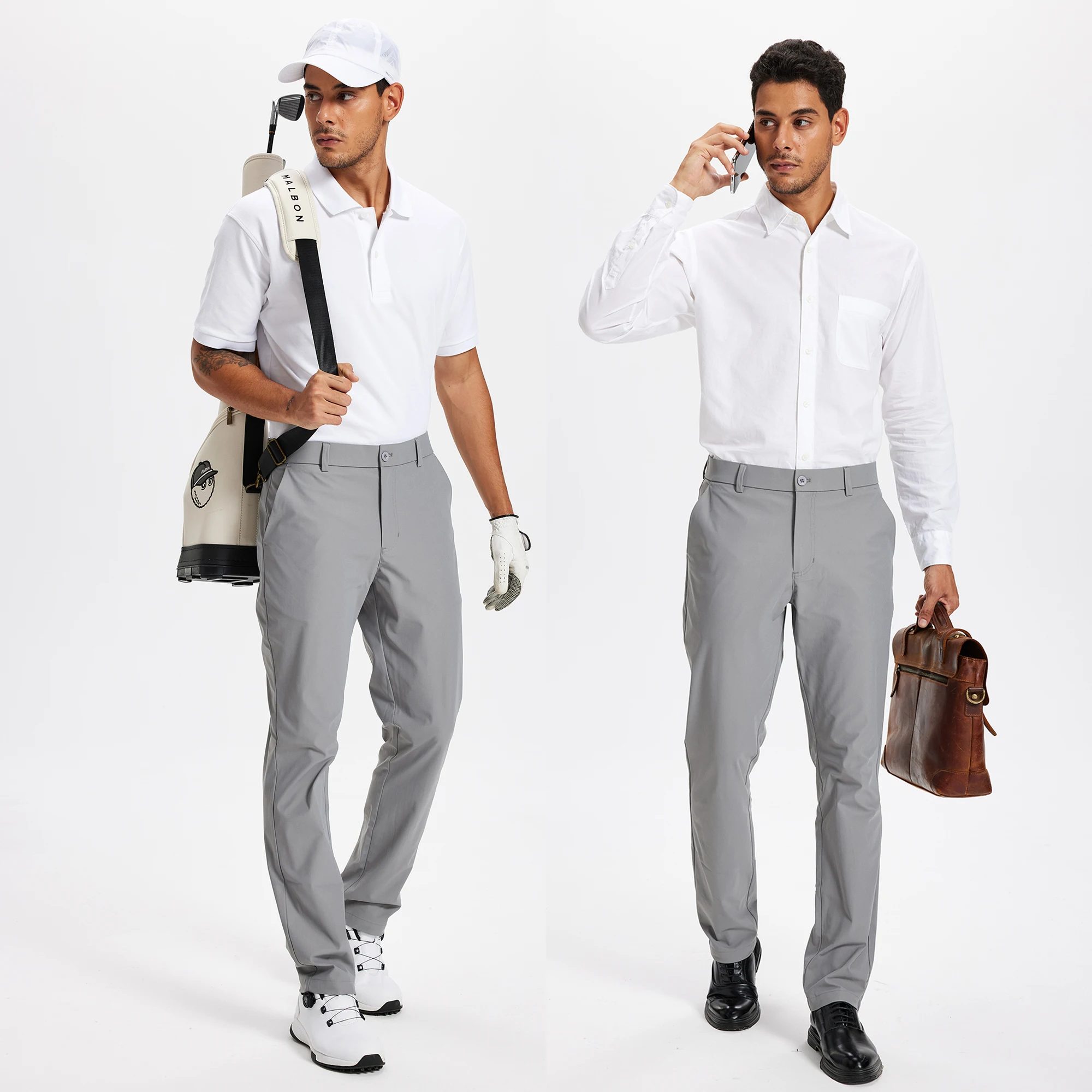 Men's Golf Pants 30"/32"/34" Stretch Work Dress Pants Slim Straight Lightweight Quality Business Trousers Casual Suit Pants